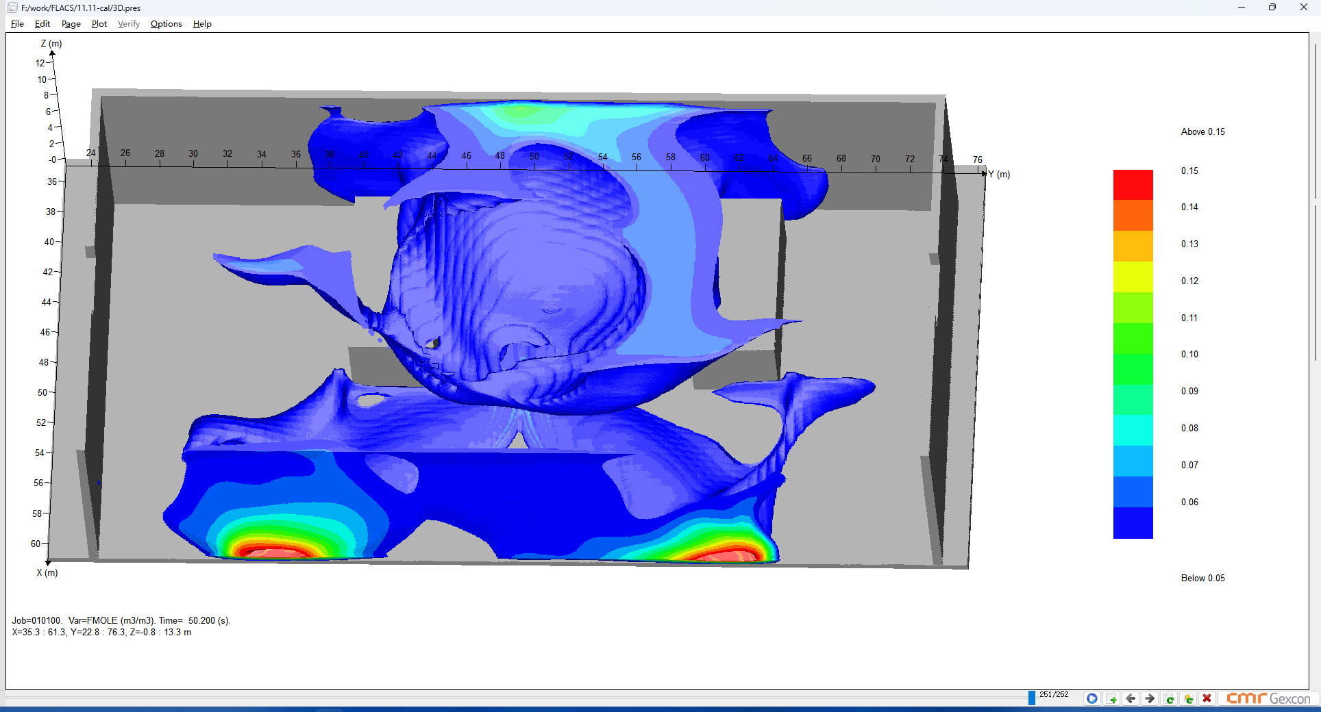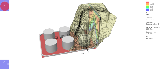 50×25×15(长宽高)厂房,设置通风口(自然通风),泄漏点0,0,0,X,Y,Z方向网格划分如下 浓度观测…