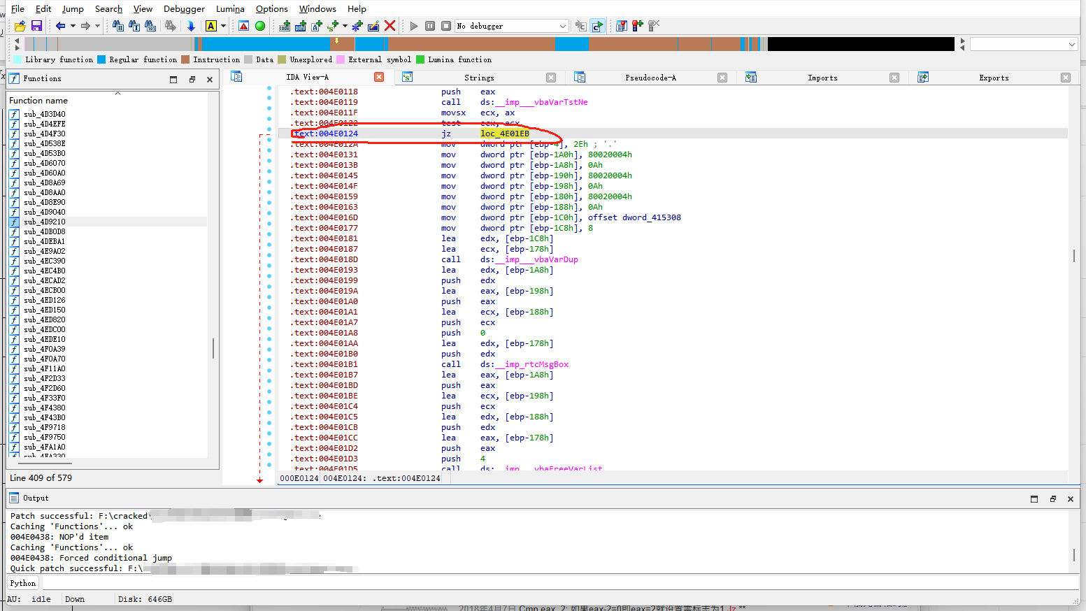 | 517340 | 00523DAA | 1 | jz | nop | loc_00523E80 |